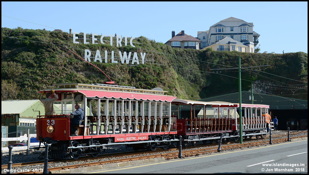 With the passengers disembarked, No 33 propels trailers No 60 & 51 back to the depot. Car No 33 was one of the last two cars delivered to the Manx Electric, back in 1906!