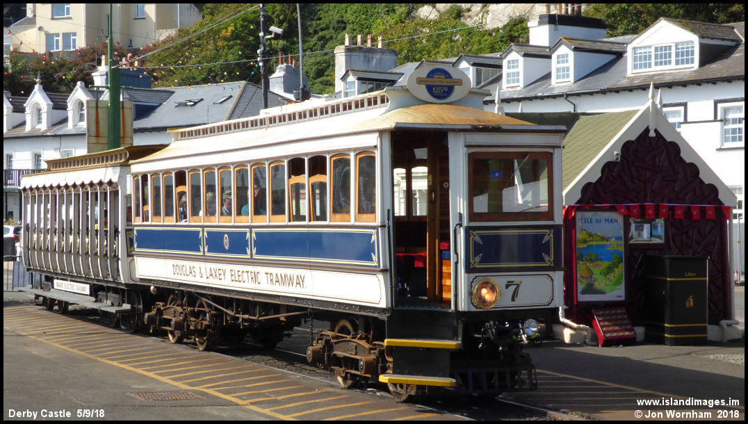 Blue liveried Car No 7 stands at the Derby Castle terminus