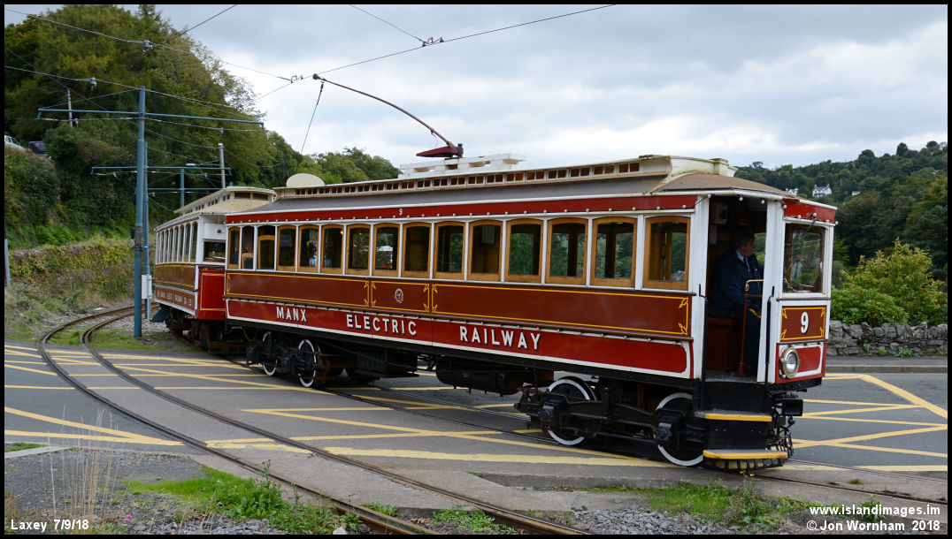 Last of the 1894 power cars in No 9 which has carried various forms of illuminations since the 1993 Centenary of the line, when there was also a parade of trams at Laxey.