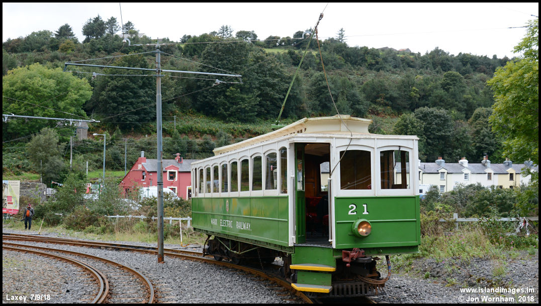 Winter Saloon No 21 in 'Nationalisation Green' livery. The MER was bought by the Isle of Man Government in 1957 to save the system from closure and this rather plain livery was introduced for a while on some vehicles.