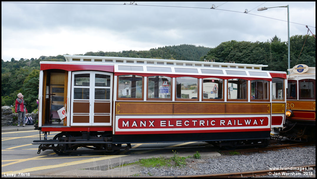 No 20 is towing trailer No 56. Originally delivered in 1904 as a conventional crossbench open car, it was converted in the 1990s to a saloon with wheelchair access.