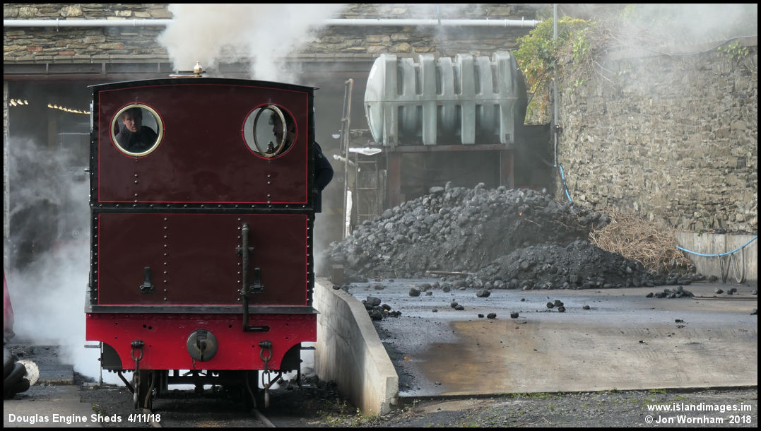 'Caledonia' comes off shed to work the 11:50 to Port Erin.