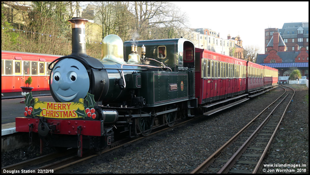 No 13 'Kissack' at the head of the 11:00 Santa Special from Douglas to Santon.