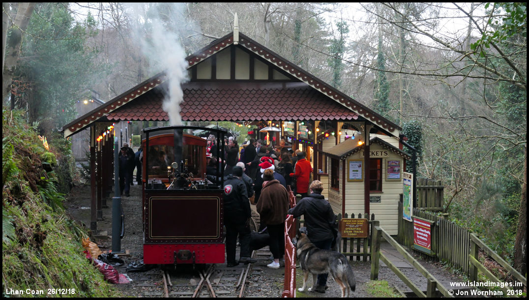 The Groudle Glen railway's Lhen Coan station on Boxing Day, when they run 'Mince Pie Trains' from Lime Kiln halt down into the glen. 'Annie' at the glen end of the train.