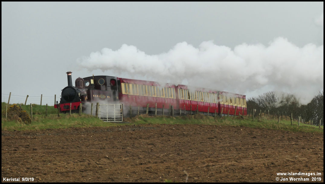 Nearly at the top of the continuous climb out of Douglas, 'Caledonia' is at Keristal, as a rain shower passes through.