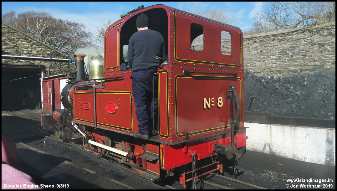Back at Douglas, 'Fenella' is about to come off shed to work the 11:50 to Port Erin.
