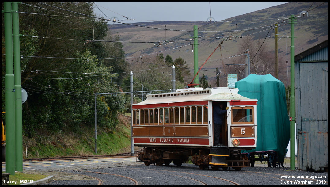 Car No 5 about to cross the main road, after which it will switch back to the landside track.