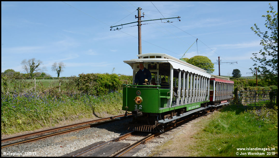 MER open crossbench Car No 32 passes Ballaglass Glen southbound towards Laxey.