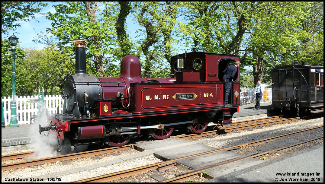 'Caledonia' back down to couple up with the Foxdale Coach. Both were delivered to the MNR to work on the steeply graded Foxdale branch.