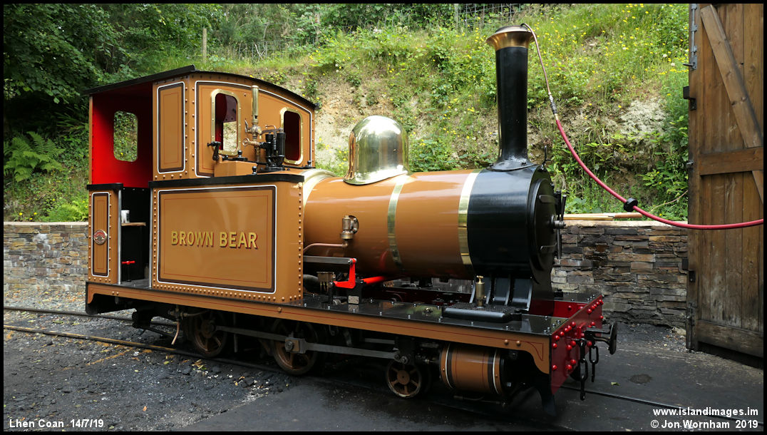 Down in the glen, the Groudle Glen Railway's new arrival 'Brown Bear' is raising steam. This loco is brand new and only arrived on the island last week.