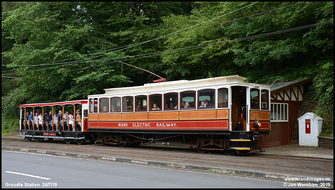 On the first day of the 2019 Transport Festival, Car No 20 paused at Groudle with trailer No 37.
