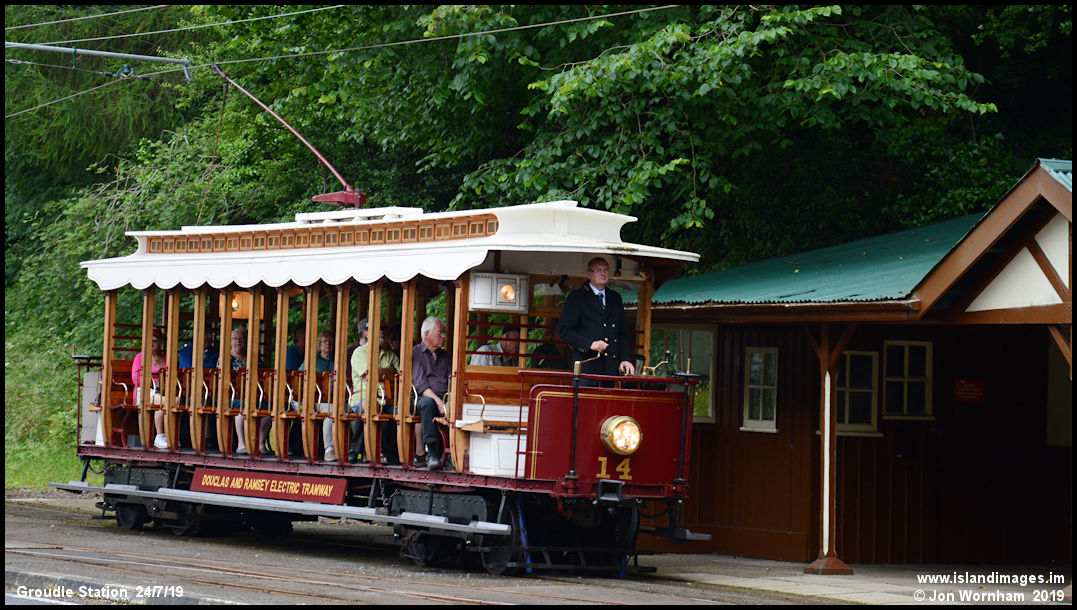 'Ratchet Car' No 14 arrives operating a Derby Castle to Groudle shuttle service.