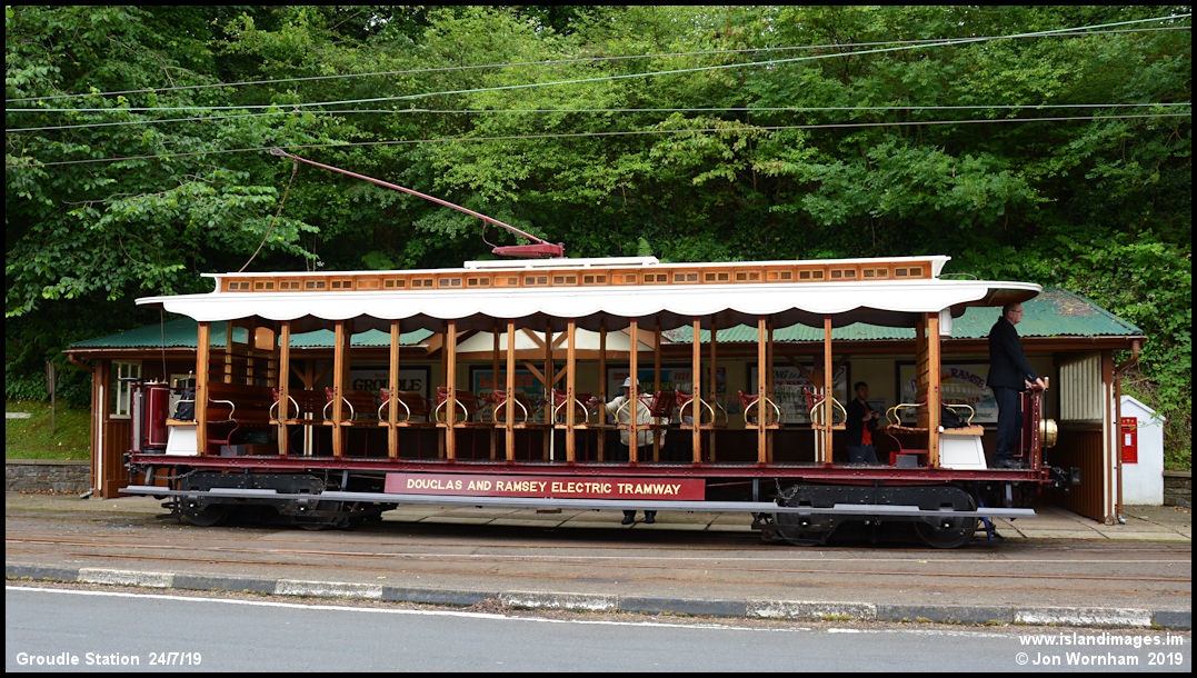 Back at Groudle, a side on view of Car No 14 after arriving from Derby Castle.