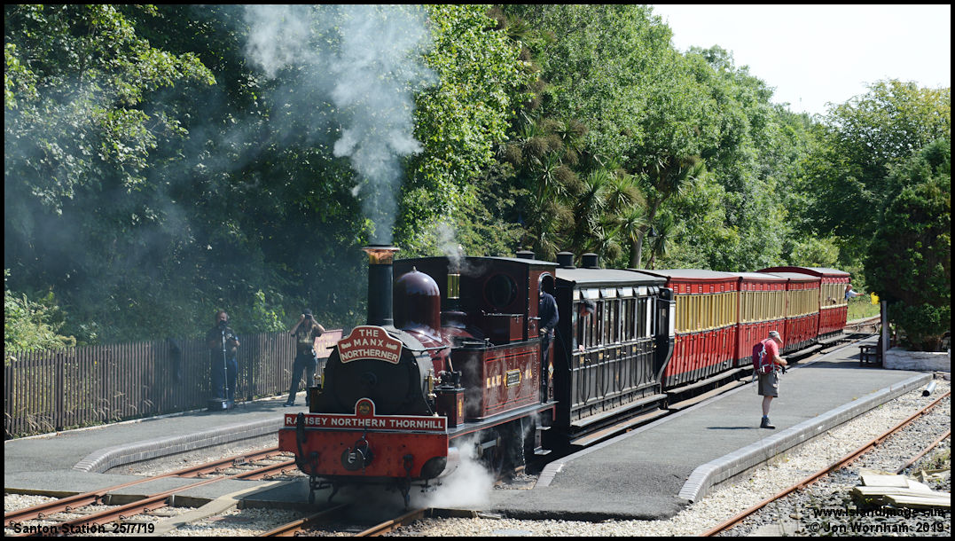'Caledonia' starts from Santon, having picked up and dropped off passengers.