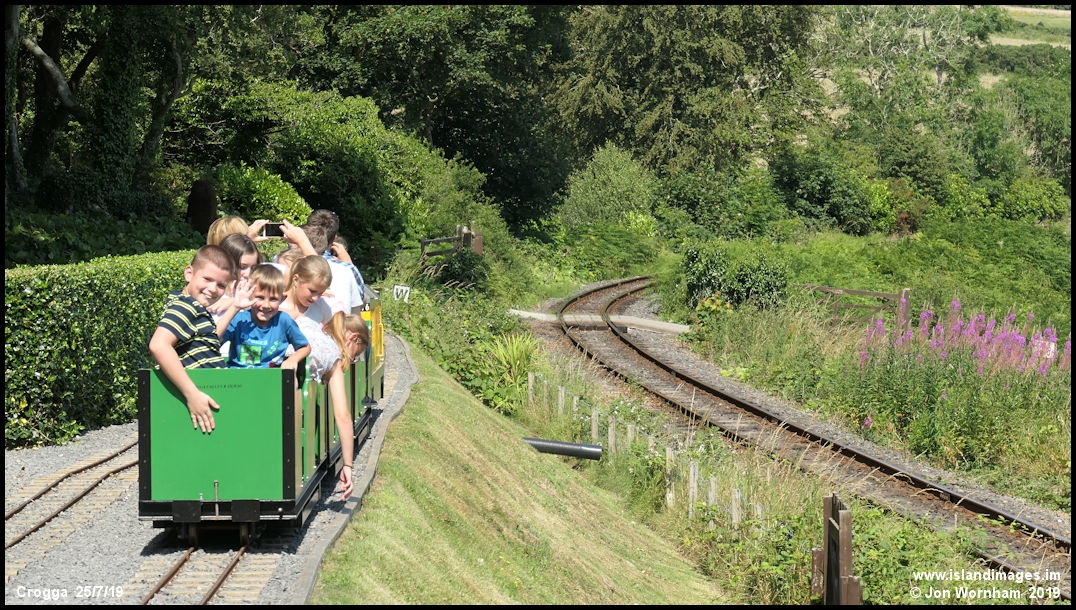 The 7.25 inch gauge Crogga Valley Railway running alongside the 3ft gauge Isle of Man Railway.
