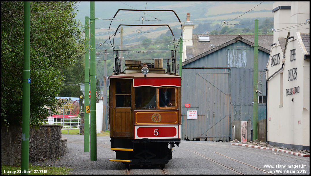 A head on view of Snaefell Car No 5.