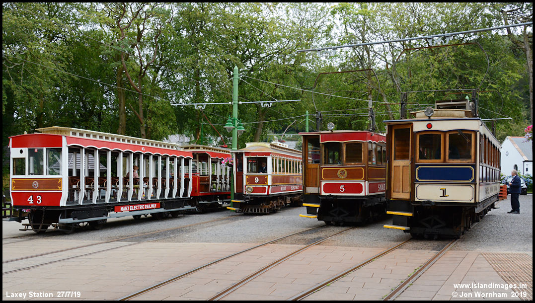 Illuminated Car No 9 obliges by arriving from Douglas before any of the others depart.