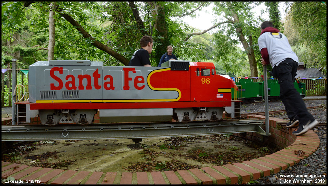 Turning 'Santa Fe' on the Lakeside turntable. The line has turntables at each end to enable the US outline locos to run cab first.