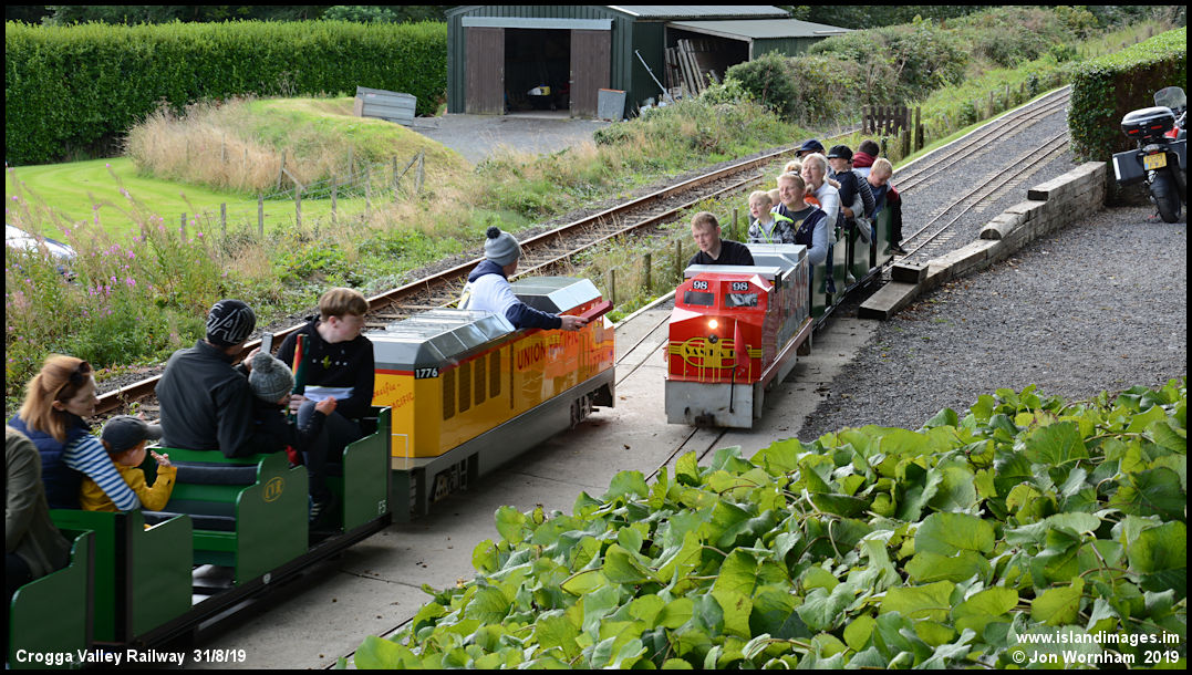 Drivers prepare to exchange the single line token as the trains pass on the doubletrack section.