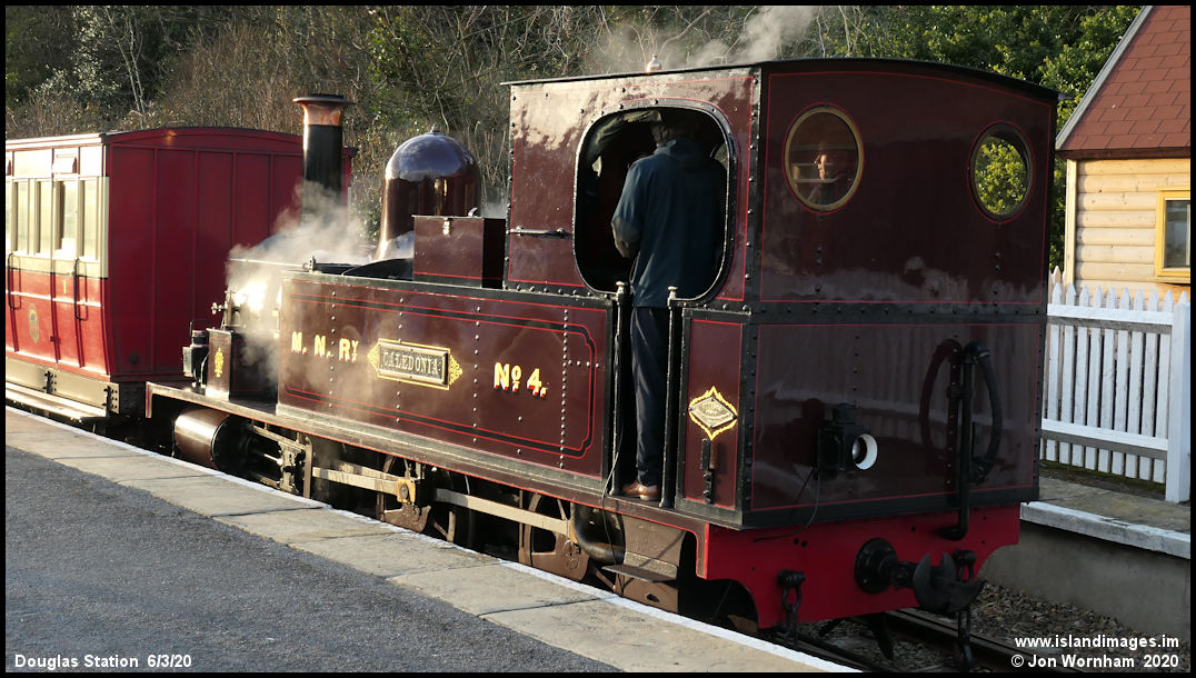 The late afternoon sun highlights the elaborate lettering on 'Caledonia'