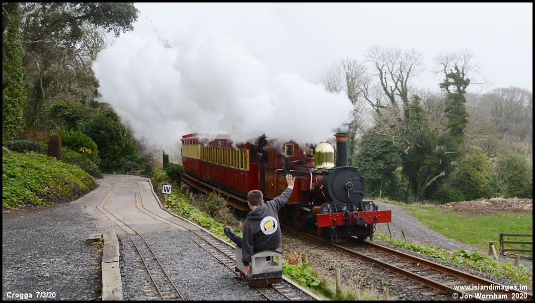 'Fenella' passing the Crogga Valley Railway 'gravity train'.