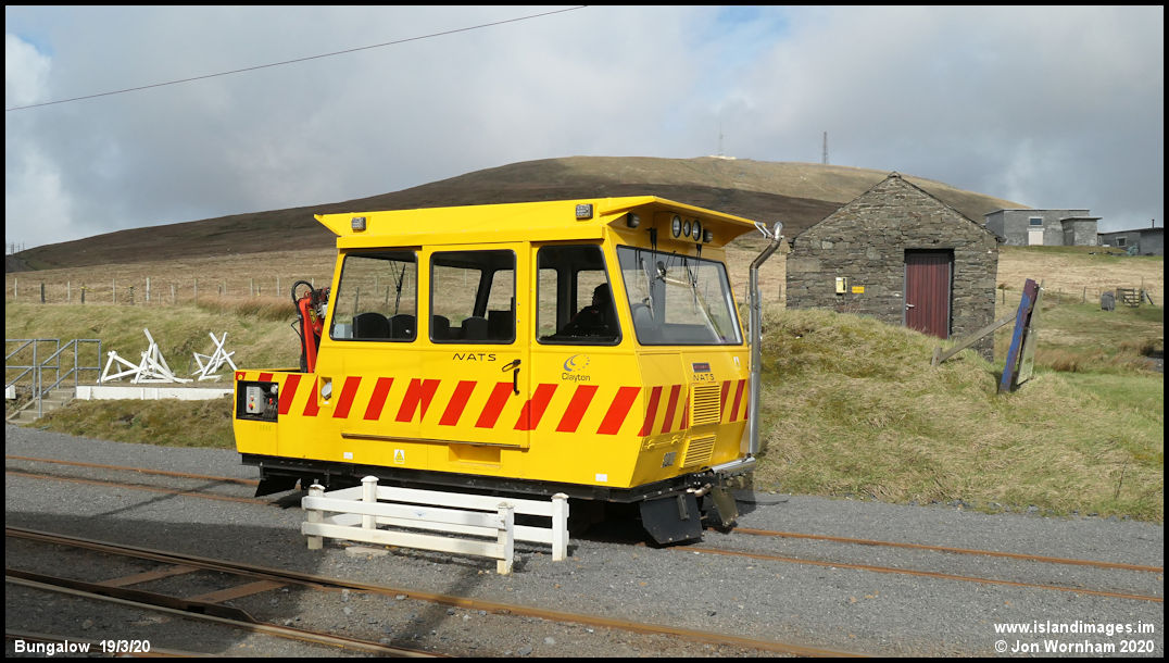 The NATS (National Air Traffic Services) Wickham railcar stands at Bungalow, with the summit visible behind.
