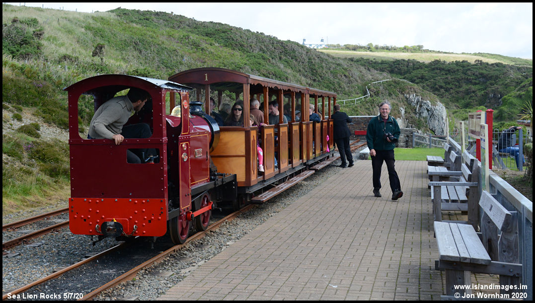 'Maltby' is ready to depart for Lhen Coan as fellow photographer Barry Edwards strides down the platform at Sea Lion Rocks!