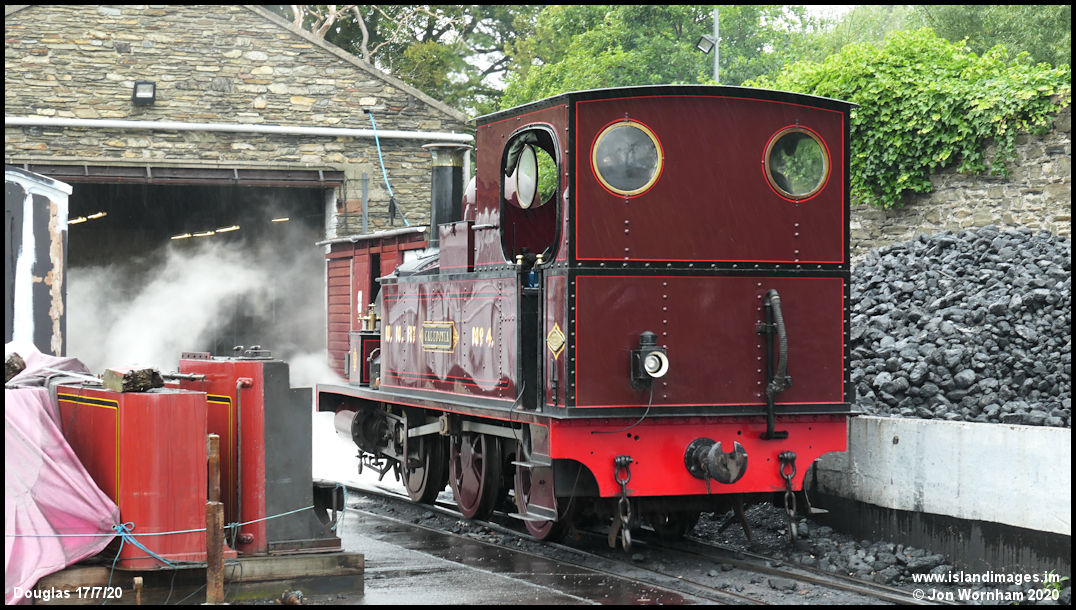 With the Steam and Electric railways due to resume operation in a week's time, Manx Northern Railway No 4 'Caledonia' was in steam at Douglas.