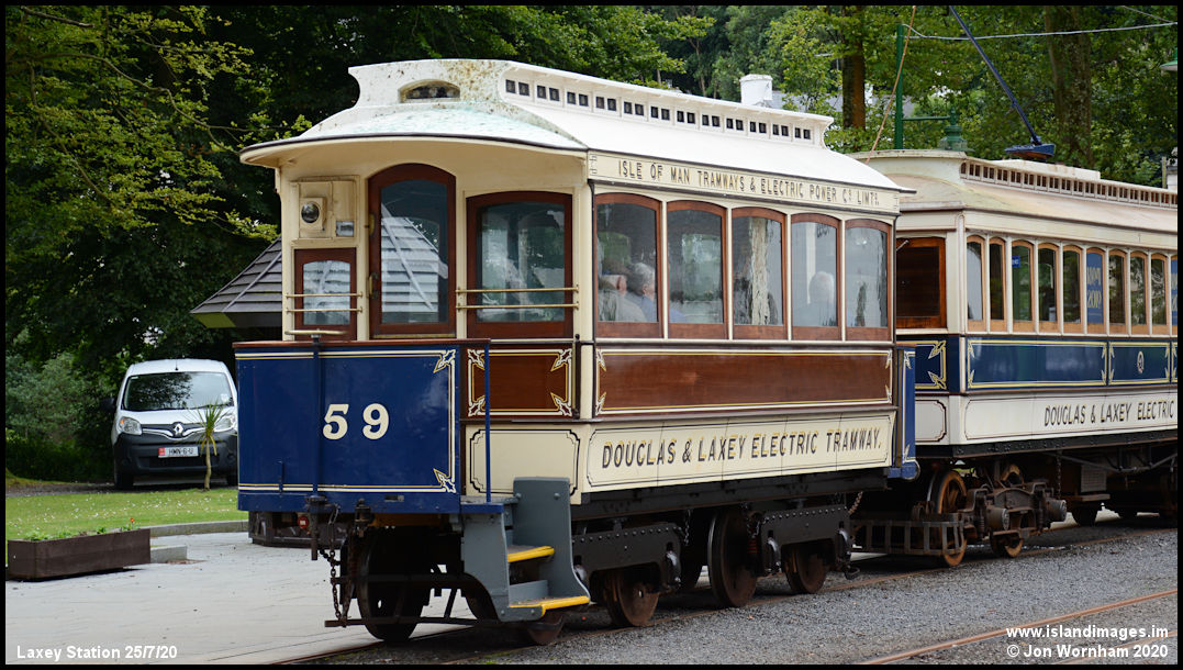 Director's/Royal saloon trailer No 59, delivered in 1895 and recently restored. As indicated by the roof line titles, the tramway generated it's own power and indeed sold electricity to consumers.