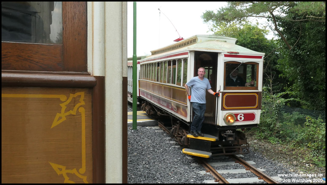 Passing Car No 6 somewhere north of Laxey after exchange of the single line operation Staff. There are currently two sections of the line operating on single line 'Staff and Ticket' procedures.