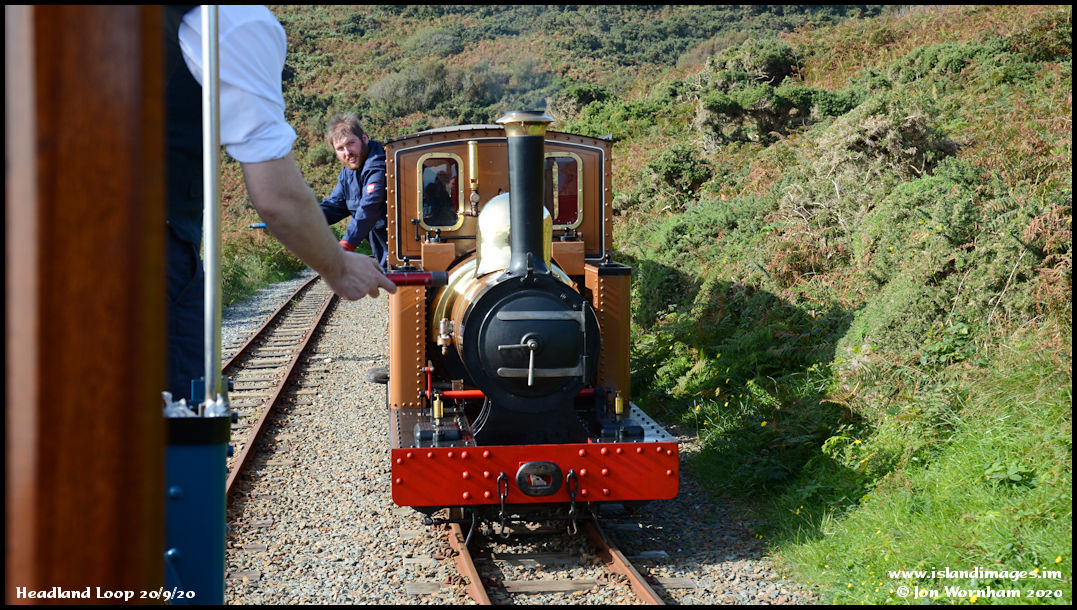 Passing the other train at Headland Loop and the drivers are ready to exchange single line staffs.