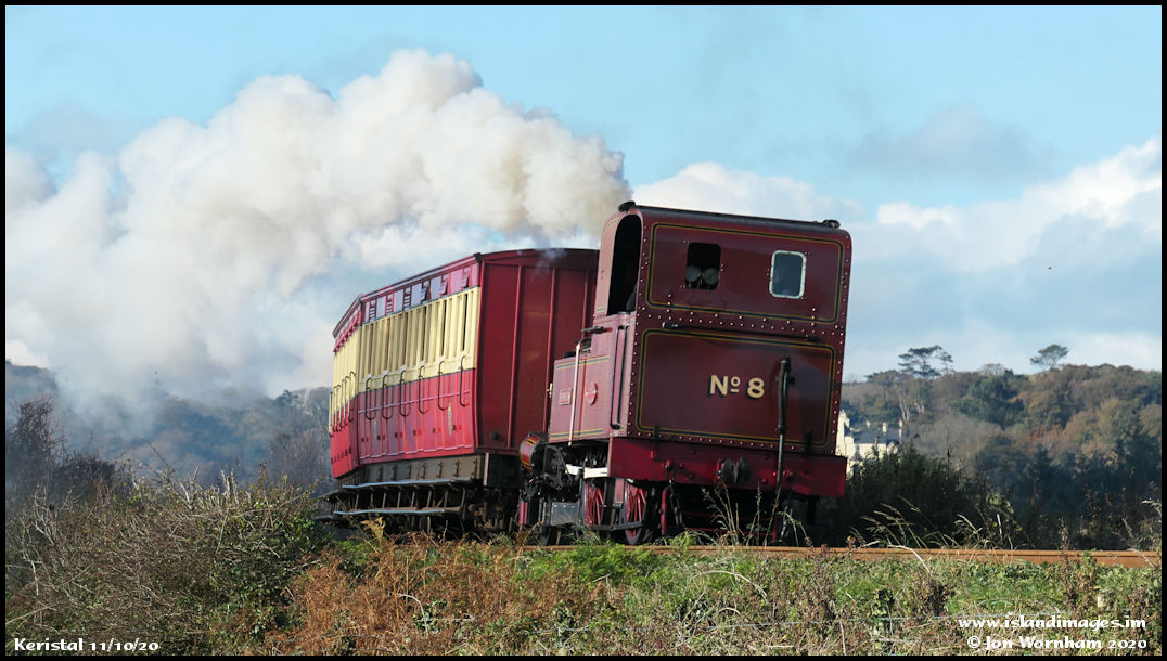 'Fenella' ruondnig the curve and heading towards Keristal, the passengers get a good view of the sea at this point.