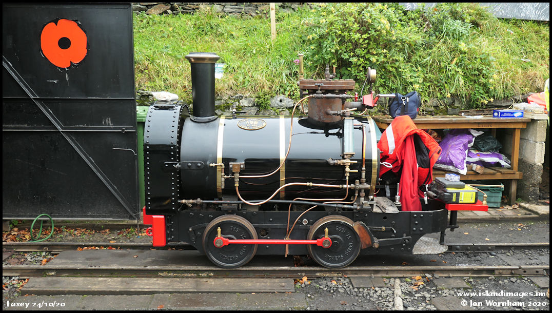 Great Laxey Mine Railway 'Ant' pictured outside the engine shed as preparations for their Hop-tu-Naa (Manx Halloween) events starting the following day take place.