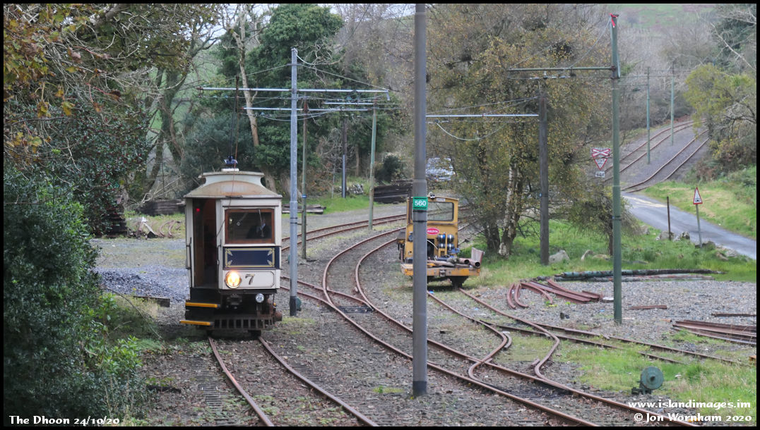 Car No 7 continues through The Dhoon with a contractor's loco in the siding.