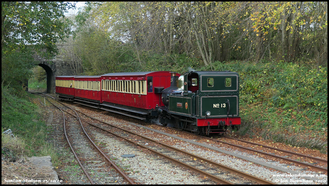 I've moved on to Santon Station, arriving in time to photograph No 13 'Kissack' arriving with the 12:00 Port Erin to Douglas train.