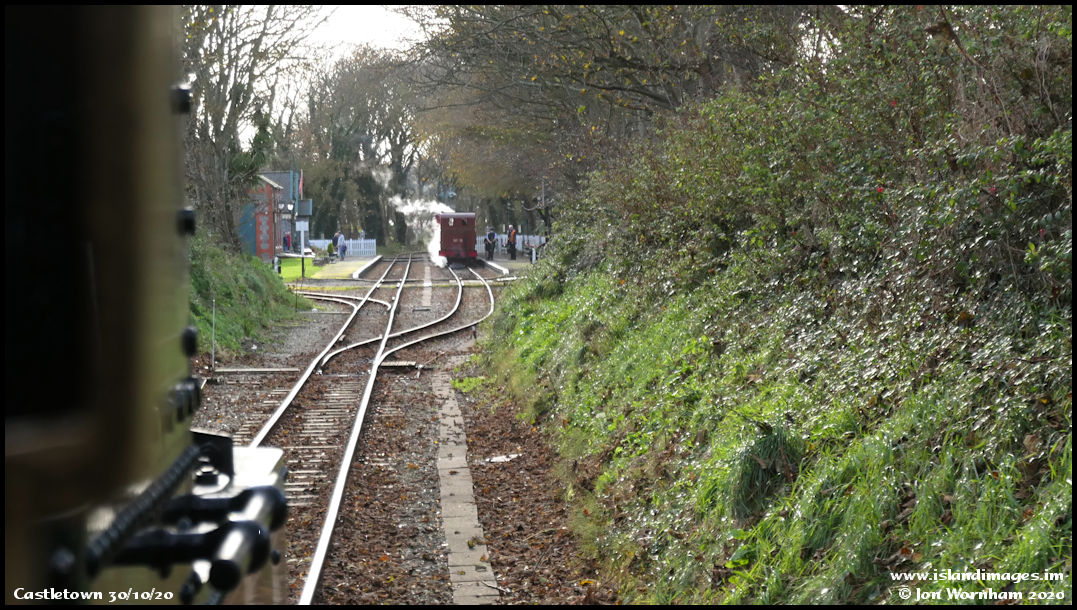 Approaching Castletown station where we'll be passing the oposite direction service train.
