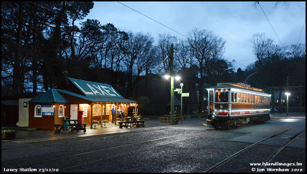 It's almost dark now and the Rooks are sorting out their roosts in the trees above as Car No 9 is ready for departure to Dhoon Glen.