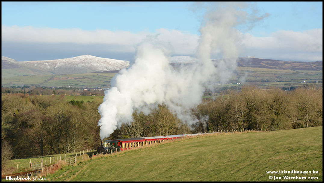 OUt on the line now and 'Kissack' emerges from the cutting at Ellenbrook on the climb up from Douglas to Keristal.