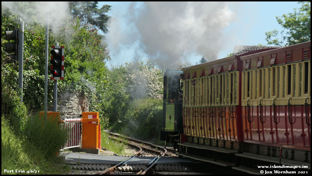 'Kissack' heads out of the station for Port St Mary and Douglas.