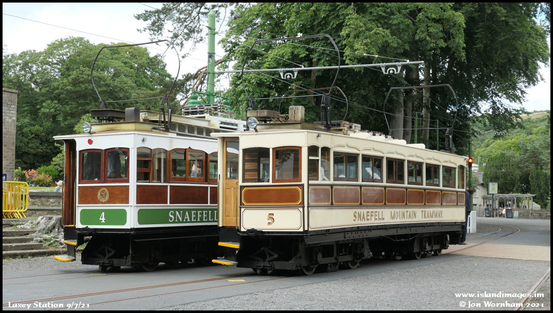 Two very smart liveries on Snaefell Mountain Railway Cars No 4 & 5.