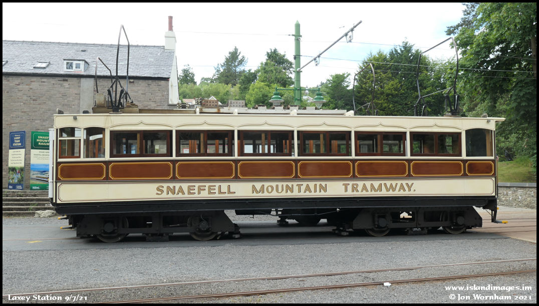 A side on view of Snaefell Car no 5.
