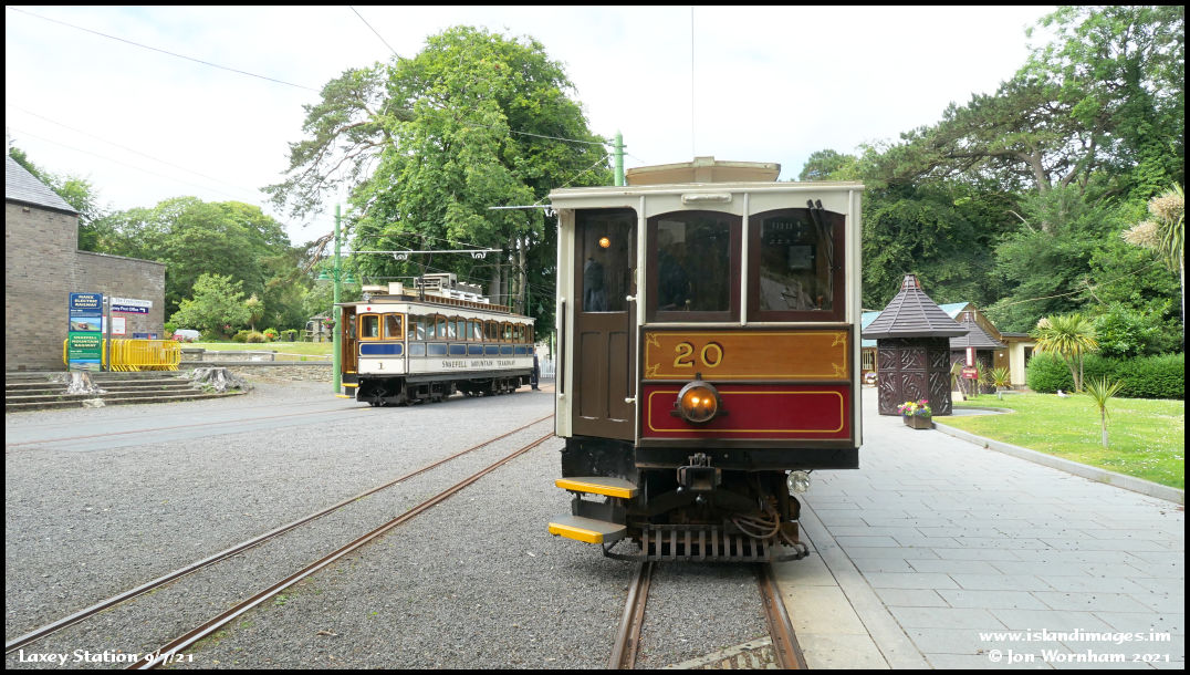 With the overhead line now repaired at Groudle there should be no delay in the departure of No 20 onwards to Douglas. SMR Car No 1 is at the other side of the station.