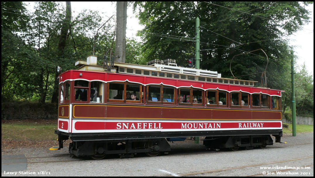 Mountain Railway Car no 2 arrives at Laxey from the summit.