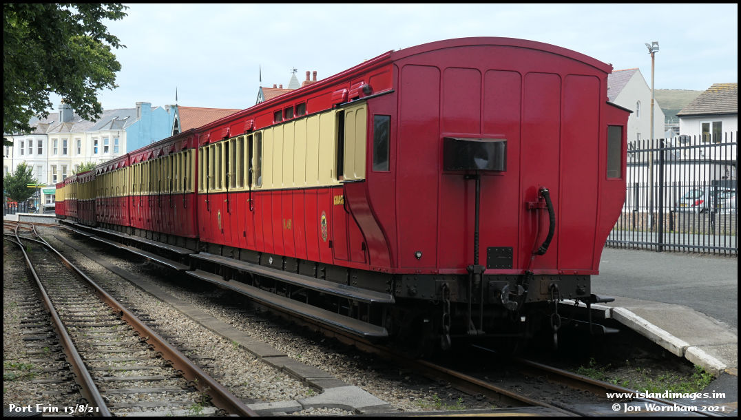 The Douglas based train is a long one today, with the six coaches only just fitting in the run-round loop without obstructing the crossing, where the photo was taken from.