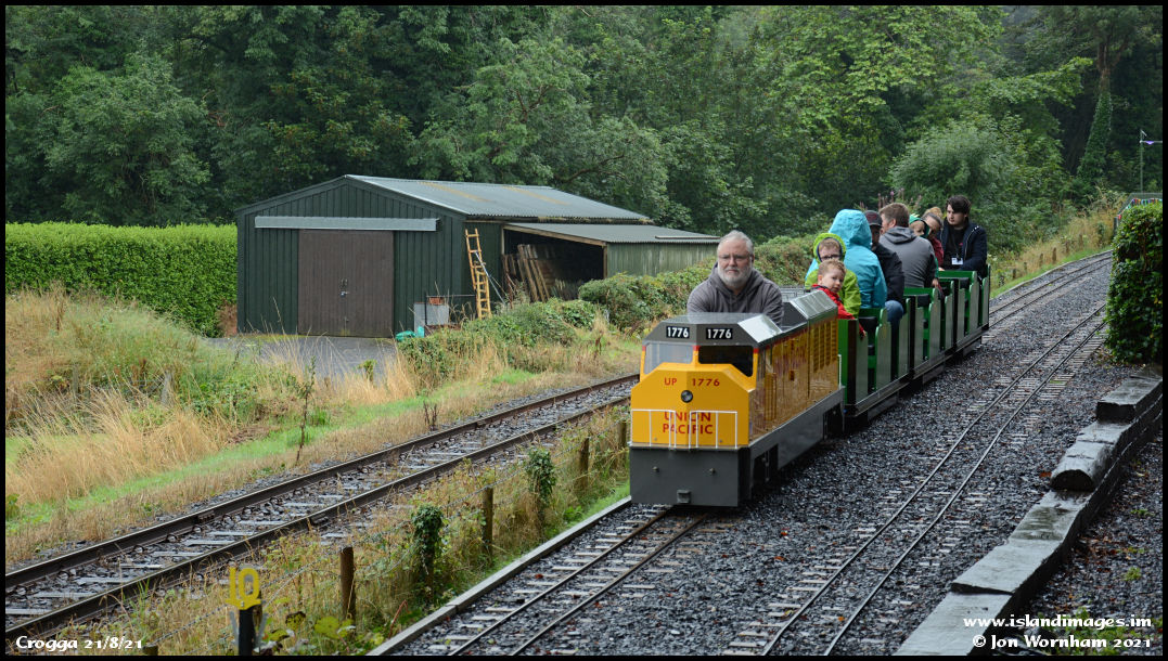 First CVR train of the day departs Crogga Height behind 'UP'. Despite the damp weather there are plenty of people arriving. One family apparently spent the whole day riding the trains!