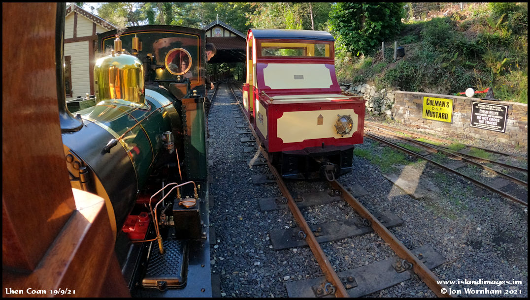 Entering Lhen Coan station with battery electric 'Polar Bear' on the adjacent track.