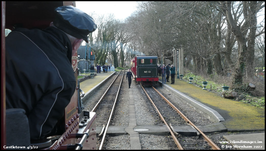 Entering Castletown Station with the Douglas bound train waiting for us, hauled by No 13 'Kissack' which first arrived on the railway in 1910.