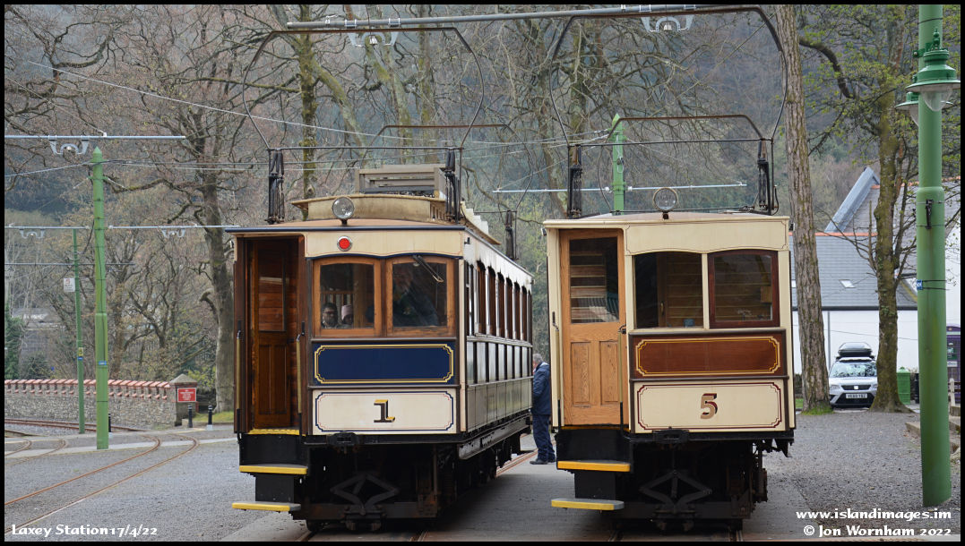 Snaefell Mountain Railway Cars No 1 & 5 await trips to the summit, although it's rather misty today so the views won't be great from up there.