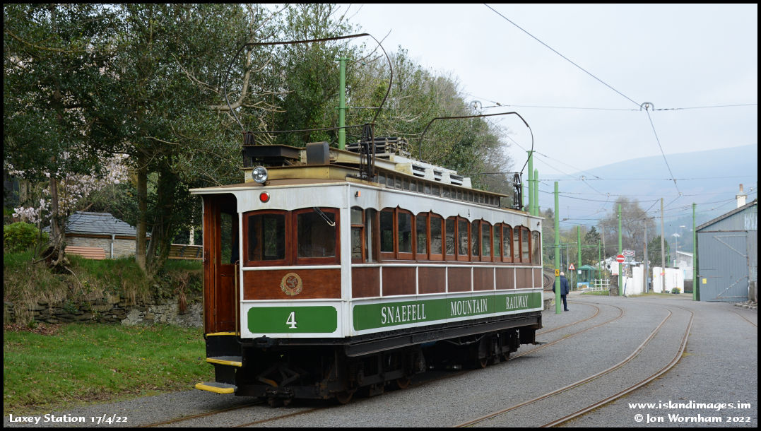 Snaefell Car No 4 has arrived in the station area, possibly after operating the 'staff run' up to the summit.