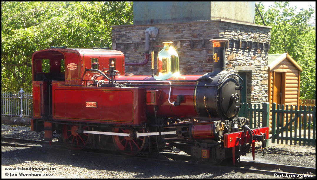 No 4 'Loch' simmers by the water tank outside the engine shed at Port Erin.